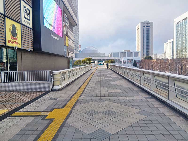 そのまま歩道橋を奥まで進み、ビルの入口を目指します。